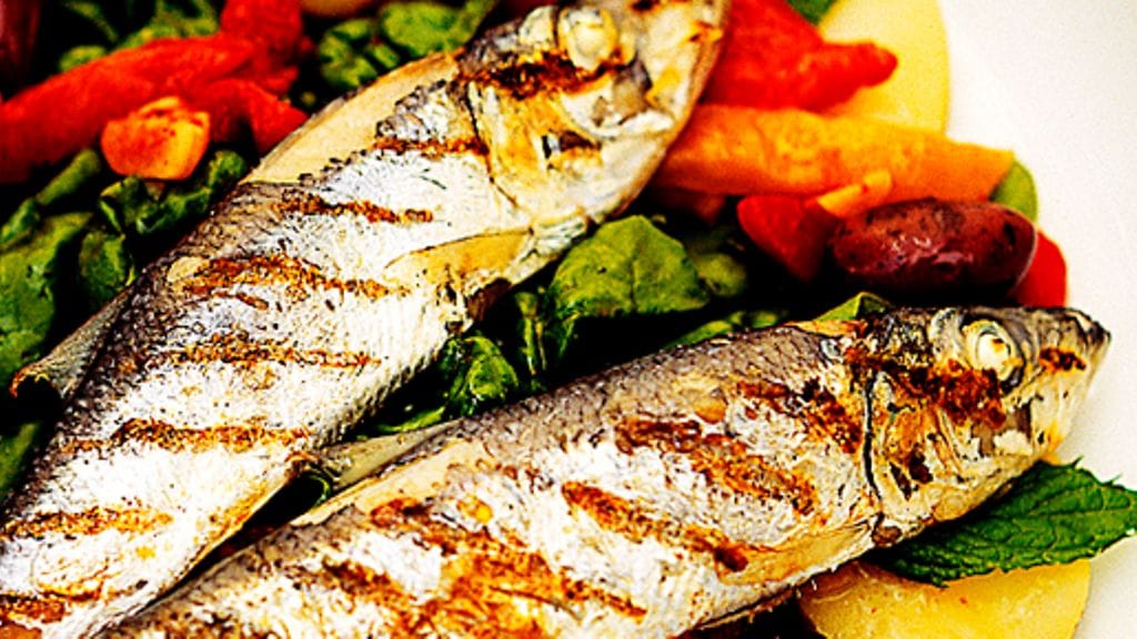 2. Kuumenna uuni 200 asteeseen. Halkaise paprika, poista siemenet ja grillaa paprikaa kuori ylöspäin 15 minuuttia. Pane sen jälkeen kuumat paprikanpuolikkaat muovipussissa jääkaappiin 30 minuutiksi. Vedä sen jälkeen paprikasta kuori irti ja suikaloi malto. Huuhtele pinaatit, leikkaa paksut lehtiruodit pois ja revi lehdet pienemmiksi. Viipaloi perunat ja jaa ne sekä pinaattisilppu neljälle lautaselle. Asettele niiden päälle paprikasuikaleet sekä oliivit. Sekoita keskenään suola, pippuri sekä viinietikka ja vatkaa öljy sekaan. Valuta kastike perunapedille.