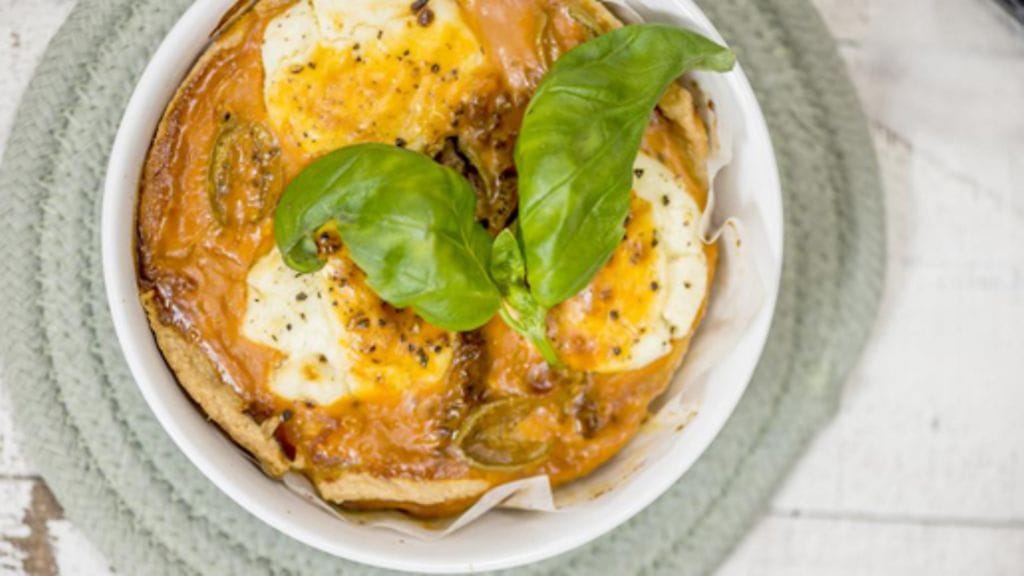 Levitä ainekset piirasvuokaan. Sekoita kerma ja munat keskenään.