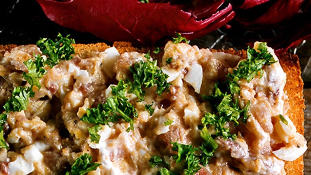 3. Levitä silliseos leiville, koristele hienonnetulla persiljalla. Tarjoile mielellään kauniiden salaatinlehtien kera.