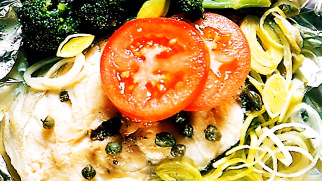1. Kuumenna uuni 200 asteeseen. Laita kala alumiinifolioarkille, ripottele päälle suolaa ja kapriksia.