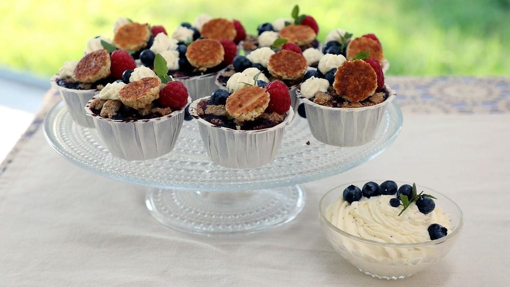 OHJE: Vatkaa voi ja sokeri vaahdoksi. Sekoita kuivat aineet keskenään. Lisää voisokerivaahtoon vuorotellen jauhoja ja vuorotellen piimää. Sekoita tasaiseksi taikinaksi. Painele 2/3 osaa taikinasta Amerikan muffinivuokien pohjalle ja reunoille (jätä 1/3 osa taikinaa vuokien kanneksi). Laita muffinivuokia 2 kpl päällekkäin, jotta kukot säilyvät ryhdikkäänä.