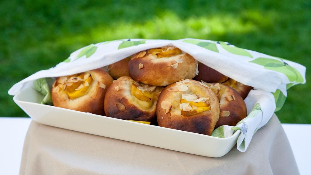 1. Sekoita vehnäjauhot, sokeri, suola ja kuivahiiva keskenään. Lämmitä kookosmaito noin 42-asteiseksi. Tähän tarvitset mielellään digitaalisen lämpömittarin.