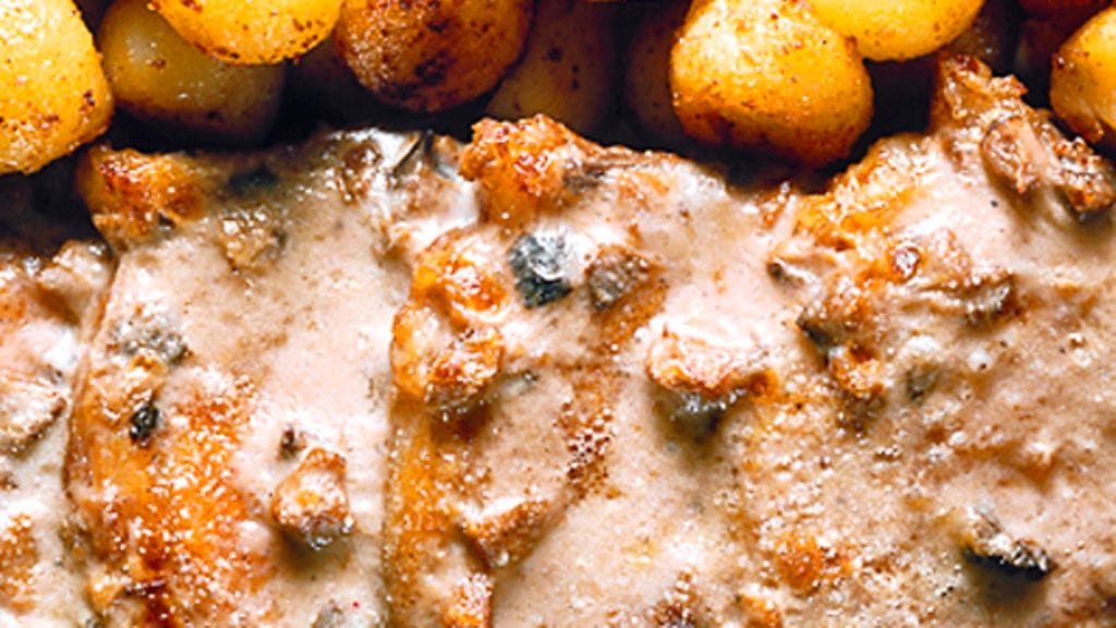 5. Tarjoile paistettujen perunoiden kanssa, ruskista loput sienet lisukkeeksi.