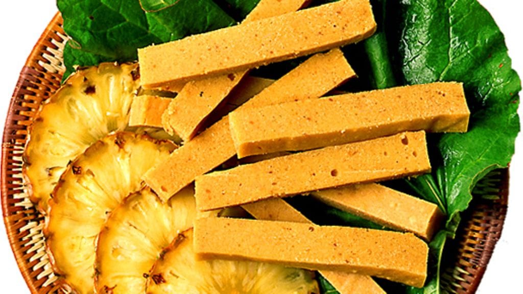 3. Voitele uunivuoka, kaada taikina siihen ja peitä vuoka alumiinifoliolla. Pane vuoka vesihauteeseen uunin alatasolle. Paista kakkua 40-50 minuuttia. Jäähdytä ja kumoa. Leikka kakku kapeiksi viipaleiksi ennen tarjoilua.
