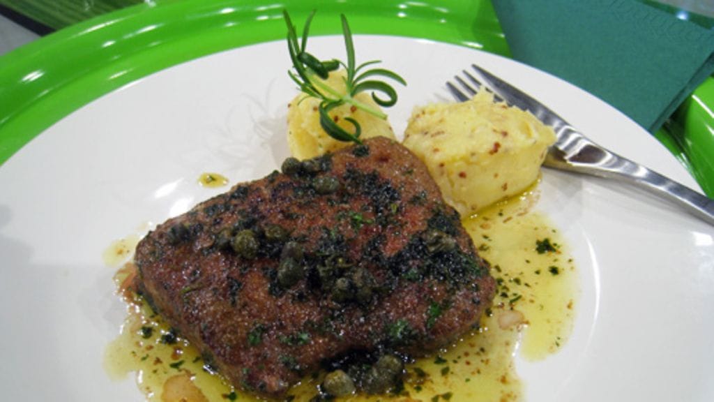 Kääntele maksaviipaleet ruisjauhoissa ja paista ne kuumalla pannulla voissa noin kaksi minuuttia per puoli. Lisää lopuksi pannulle kaprikset, hienonnettua persiljaa ja tilkka valkoviiniä.