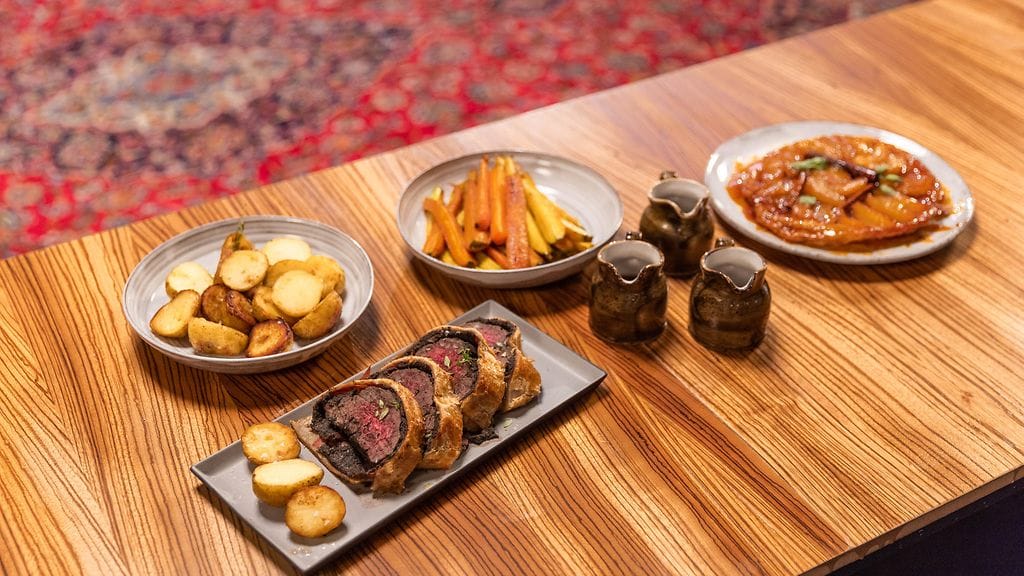 Trimmaa sisäfilee tasaiseksi ja säästä poistetut palaset myöhempää käyttöä varten. Mausta sisäfilee suolalla ja pippurilla ja paista sen pinnat kiinni kuumassa pannussa. Aseta vetäytymään ja sivele sinapilla kauttaaltaan.