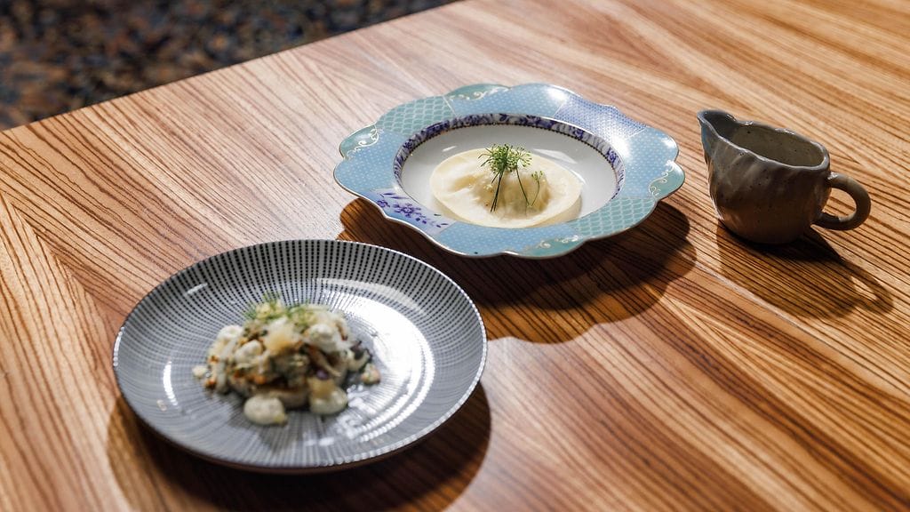Täytä raviolit ricotta-rapu täytteellä, ja keitä noin 3min suolatussa vedessä. Tarjoile raviolit kastikkeen kanssa.
