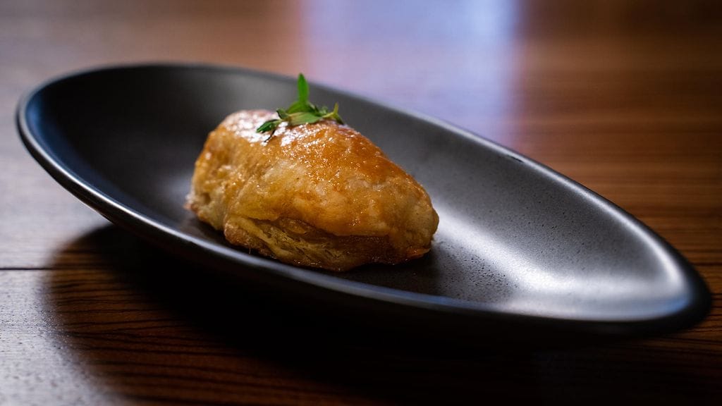 Tee voitaikinasta pyöreä kiekko. Aseta kiekolle mozzarellaa ja jauhelihatäytettä. Sulje taikinakiekko. 5. Paista 200 asteisessa uunissa noin 17 minuuttia. 6. Koristele tuoreen oreganon lehdillä.