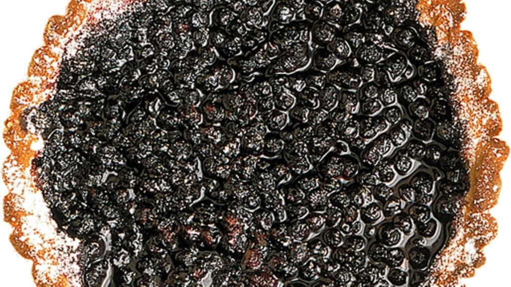2. Kauli taikina ja vuoraa sillä irtopohjavuoka. Pistele piiraspohja haarukalla ja kaada päälle mustikat. Sekoita sokeri ja Maizena ja ripottele seos marjojen päälle. Paista 200-asteisen uunin alatasolla noin 20 minuuttia.