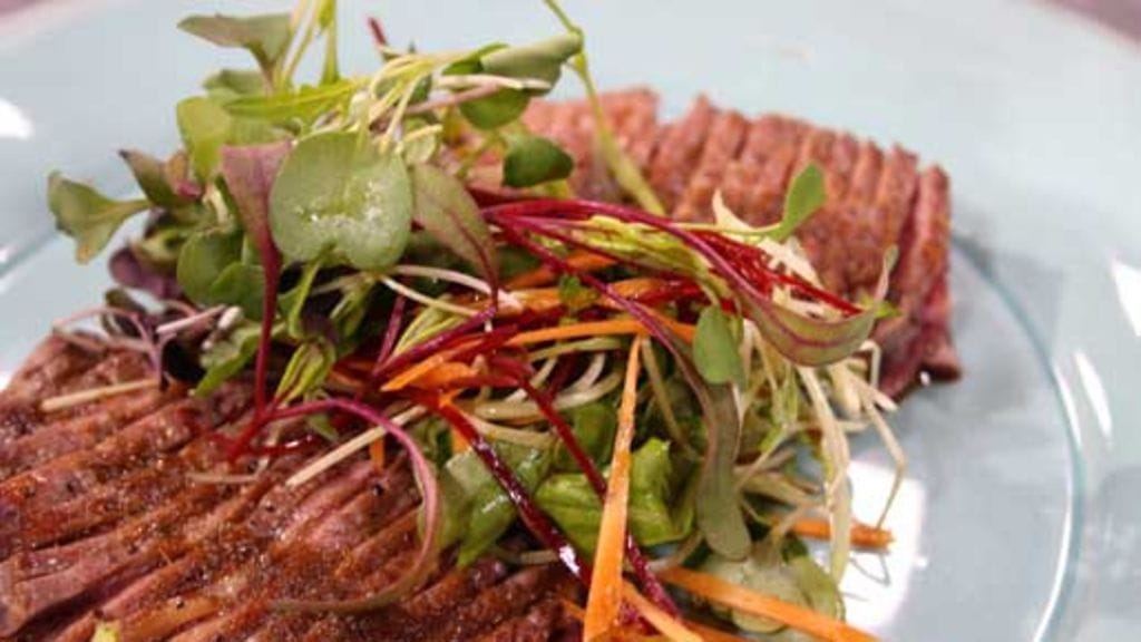Anna vetäytyä viisi minuuttia ja leikkaa ohuiksi siivuiksi.