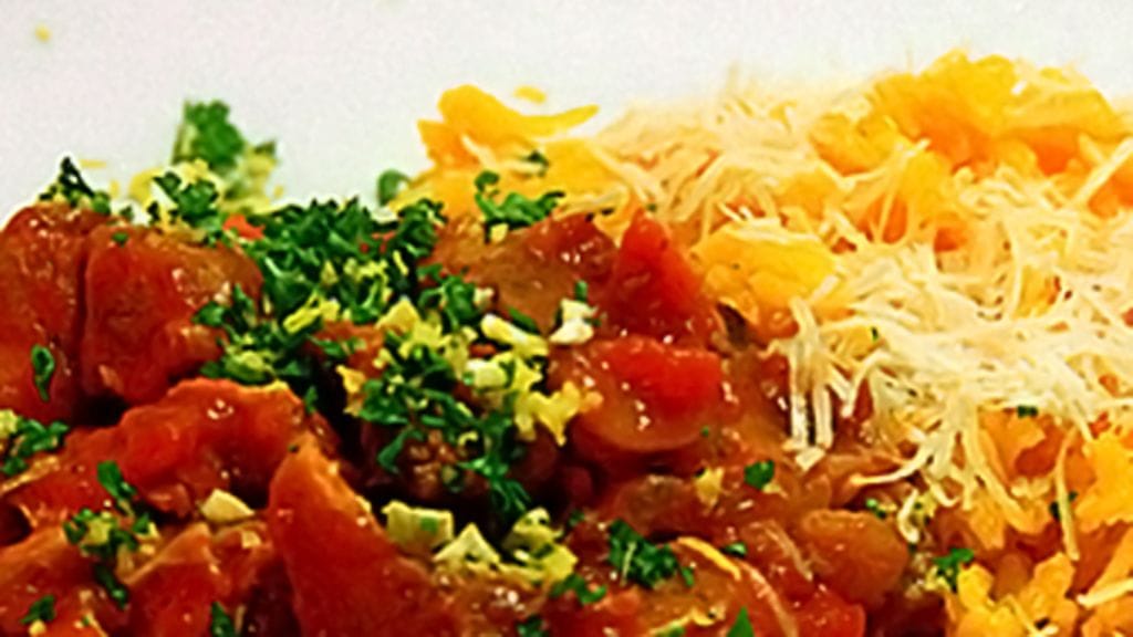 1. Osso buco: Kaada hieman vehnäjauhoja lautaselle ja paneroi lihaviipaleet. Paista viipaleet öljyssä ja laita pataan. Kuori ja hienonna sipuli, valkosipuli ja porkkanat. Lisää ne pataan kun kaikki liha on ruskistettu. Lisää viini, tomaattimurska ja tomaattipyree. Määrä riippuu kattilan koosta, mutta lihojen tulee peittyä – lisää vettä tarvittaessa. Peitä kannella, kuumenna kiehuvaksi ja anna poreilla miedolla lämmöllä 1-2 tuntia lihaviipaleiden paksuudesta ja mureudesta riippuen. Sekoittele puulusikalla välillä pohjia myöten, jottei pata pala pohjaan. Mausta suolalla ja pippurilla.