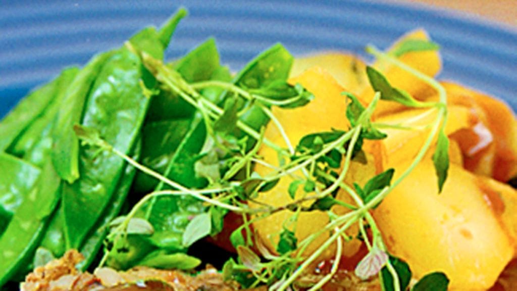 1. Kuumenna uuni 200 asteeseen. Kuori ja hienonna sipuli, hienonna herkkusienet ja pähkinät. Paista sipuli pehmeäksi ja kullanruskeaksi öljyssä, lisää sienisilppu, paista kunnes sienet ovat pehmeitä ja saaneet väriä. Ripottele päälle vehnäjauhoja ja sekoita. Lisää vesi, sekoita ja anna poreilla muutama minuutti. Ota pannu liedeltä. Lisää pähkinät, 3 dl korppujauhoja, soija ja timjami. Mausta suolalla ja pippurilla. Sekoita.