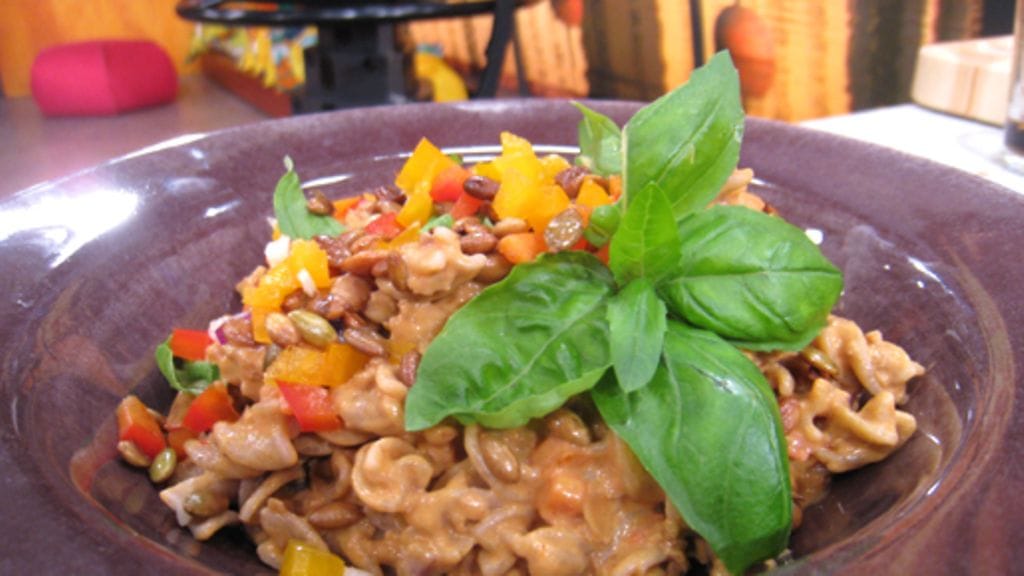 Lisää kypsä pasta ja yrtit joukkoon juuri ennen tarjoilua.