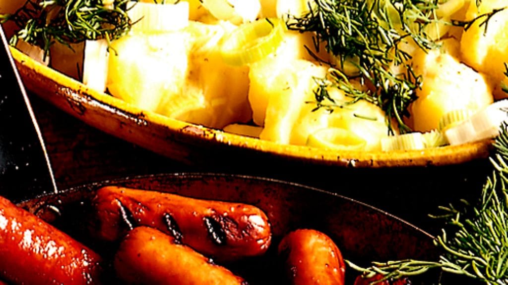 3. Grillaa makkarat ja tarjoile perunasalaatin kera.