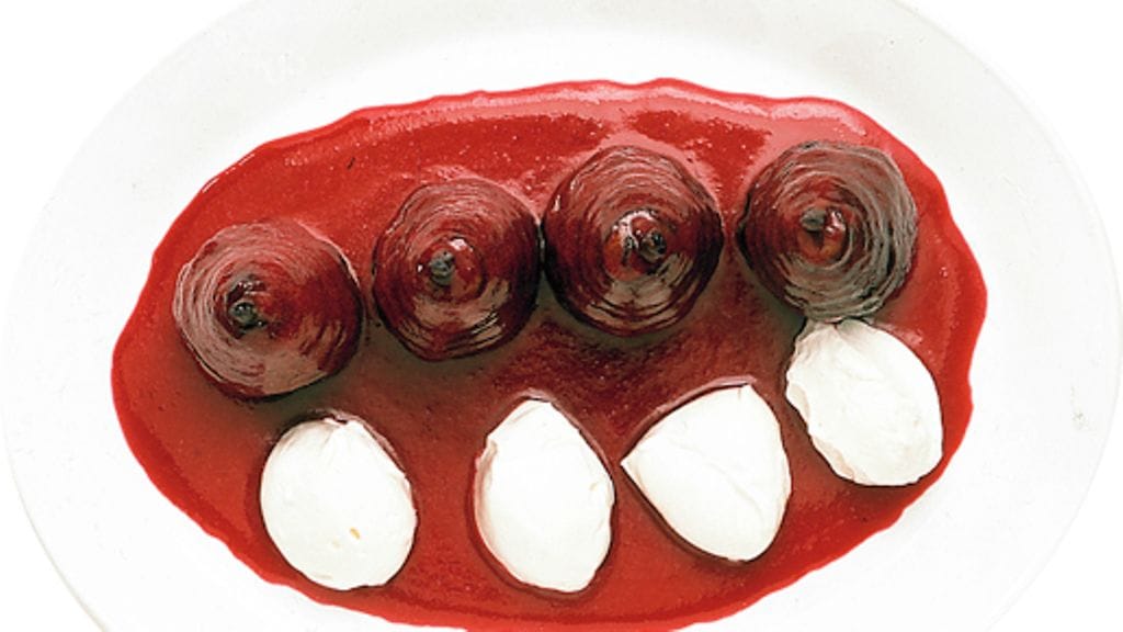 3. Kaada puolukkakeitos päärynöiden päälle niin että ne peittyvät. Anna maustua kylmässä viikko tai enemmän.
