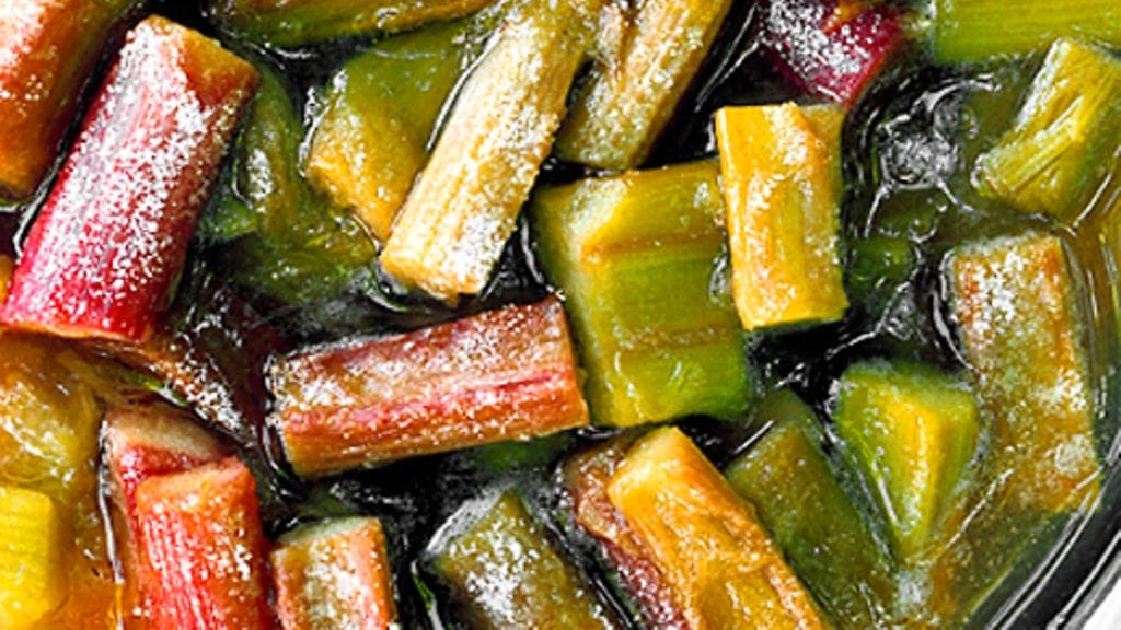 1. Viipaloi varret karkeasti. Sekoita sokerin kanssa kattilassa, kuumenna ja keitä hiljaa, kunnes raparperi on pehmeää.