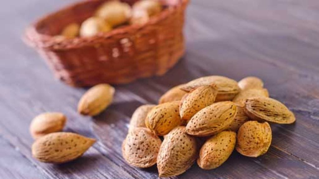 2. Erottele munista keltuaiset ja valkuaiset. Vatkaa keltuaiset sokerin kanssa kuohkeaksi. Lisää mantelijauheet. Vatkaa valkuaiset kovaksi vaahdoksi ja kääntele keltuais-manteliseokseen. Valuta raparperivuoasta nestettä, jos sitä on kertynyt liikaa. Levitä taikina raparperien päälle ja paista noin 30 minuuttia. Tarjoile kermavaahdon kanssa.