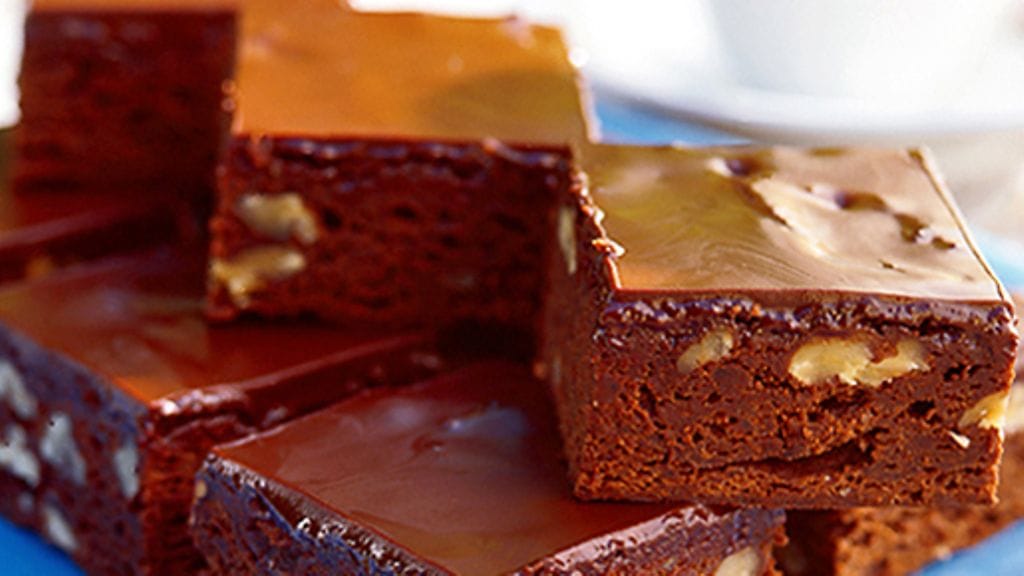 1. Kuumenna uuni 175 asteeseen. Paloittele suklaa ja sulata. Ota kattila liedeltä ja lisää voi pieninä nokareina, sekoita. Vatkaa munat, sokeri ja vaniljasokeri, sekoita sulan suklaan kanssa. Yhdistä jauhot, leivinjauhe ja pähkinärouhe, lisää taikinaan. Sekoita tasaiseksi taikinaksi.