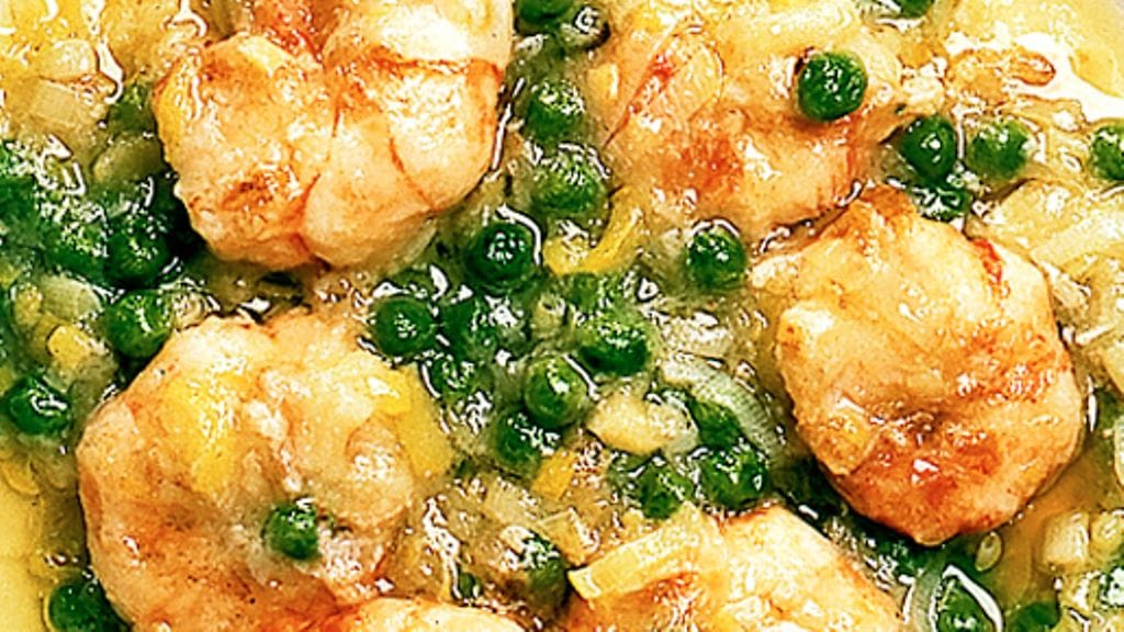 3. Kuullota purjo ja valkosipuli wokissa. Laita katkaravut takaisin pannuun ja kuumenna sekoitellen pari minuuttia. Lisää herneet ja paista minuutti. Sekoita kanaliemi, sherry ja loppu maizena keskenään ja kaada wokpannuun katkarapujen ja vihannesten joukkoon. Sekoita, kunnes kastike hieman paksuuntuu. Tarjoile kuumana vastakeitetyn riisin kanssa.