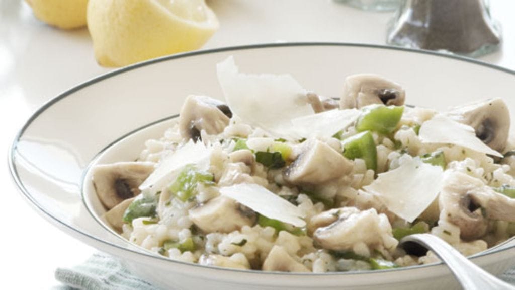 Kun risotto on kiehunut 10 minuuttia, lisää sekaan paistetut tatit. Lisää kevyen kiehumisen edetessä edelleen kanalientä kunnes riisi on samettisen kermaista. Koko keittoaika on noin 20 minuuttia. Lisää lopuksi metsäsienet, kuiva vermutti, loput voista ja raastettu parmesaani.
