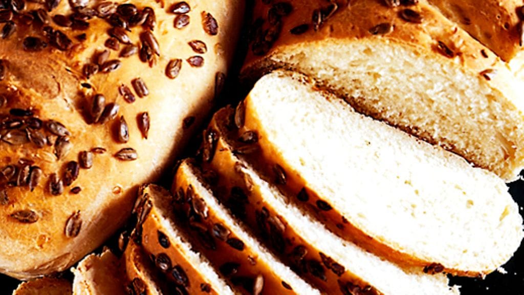 1. Liuota hiiva 37-asteiseen veteen, lisää suola ja öljy ja sitten jauhot ja puolet siemenistä, vaivaa sileäksi, joustavaksi taikinaksi. Alusta perusteellisiesti, peitä ja anna nousta 30 minuuttia.