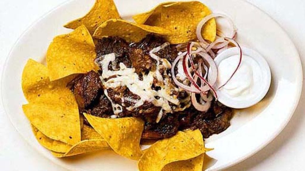 3. Kuumenna uuni 275 asteeseen. Gratinoi chili juustoraasteella juuri ennen tarjoilua. Koristele hienonnetulla punasipulilla ja tarjoa lisänä uunissa paahdettua maissilatuja ja kermaviiliä.