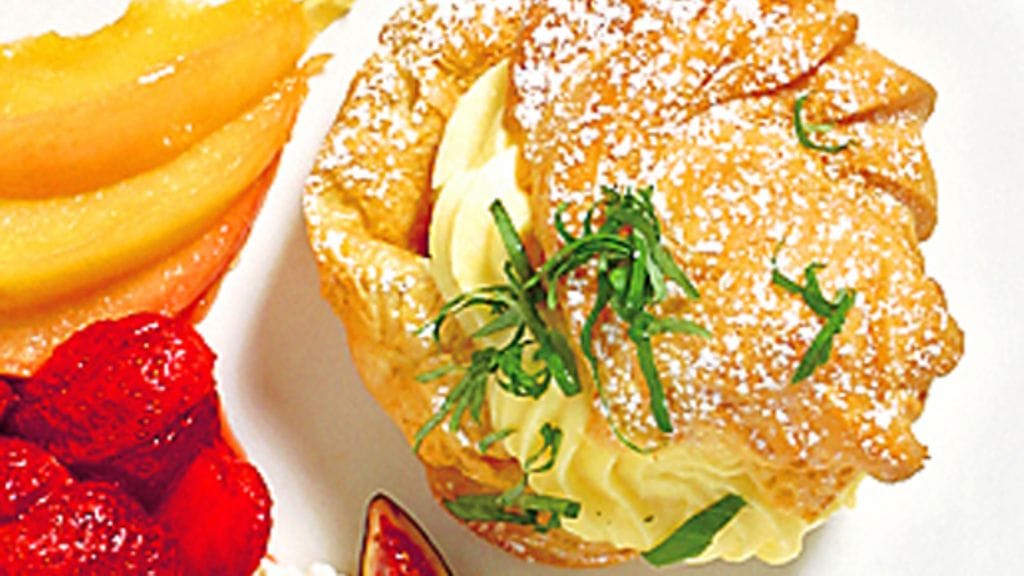 4. Vatkaa vaniljakerman ainekset, täytä tuulihatut ja koristele tomusokerilla. Omenahilloke ja mansikkasalaatti sopivat hyvin niiden kera.