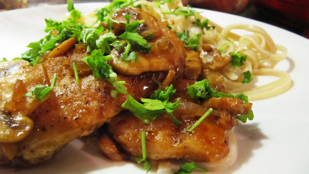 Pollo al Marsala on italialaisklassikko, jota en ole päässyt vielä paikanpäälle maistamaan. Pannulle se on päätynyt muutaman kerran hieman eri muunnoksin. Yleensä herkkusienien ja parmankinkun kera, viime kerralla spontaanin mieliteon myötä ilman. Persiljakin korvattiin basilikalla. Rustiikkisemman version saat korvaamalla prosciutton pekonilla. Kylkeen ei italialaiseen tapaan välttämättä tarvitse mitään, mutta salaatit ja vaikka risotto toimivat mainiosti.