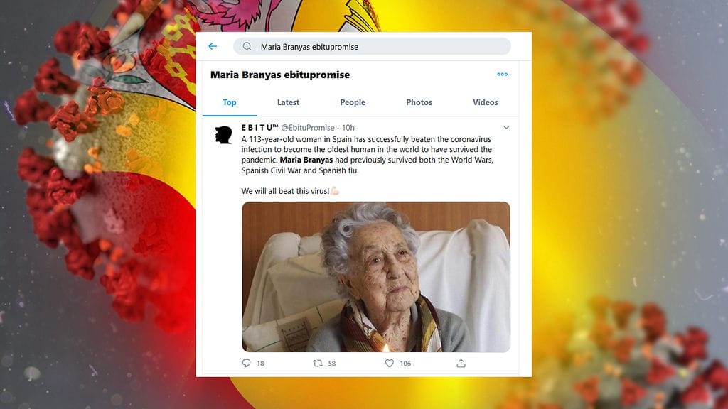 Maria Branyas sai tartunnan huhtikuussa ja poti taudin eristyksissä omassa huoneessaan, kertoi vanhainkodin edustaja. Branyas sai taudista vain lieviä oireita.