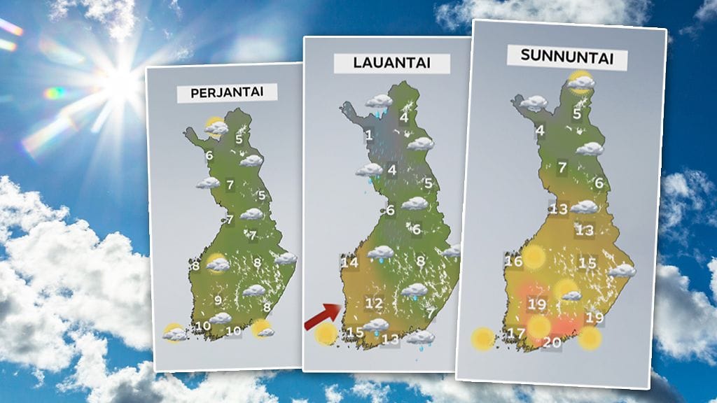Viikonloppu alkaa monin paikoin epävakaisena ja sateisena, mutta sunnuntaiksi on luvassa aurikoista säätä ja kohonneita lämpötiloja.
