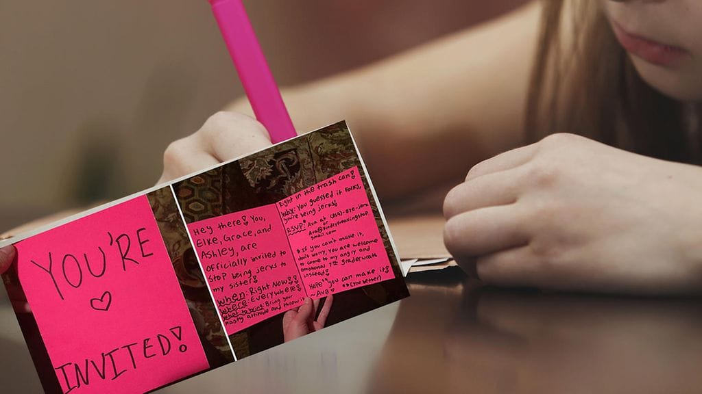 12-vuotias tyttö näpäytti pikkusiskonsa koulukiusaajia askartelemalla heille hieman erilaisen kutsukortin.