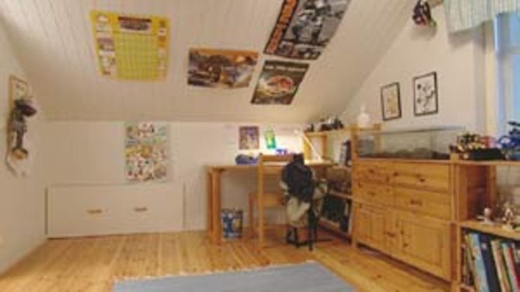 Huoneen haasteita ovat vinokatot, muuri ja yksi pieni ikkuna. Elias toivoi huoneeseen suurta muutosta, jossa kalusteiden paikka muuttuisi.