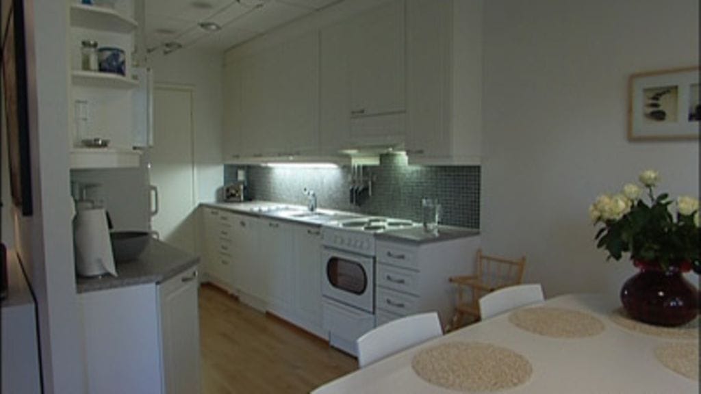Alakerta sisustettiin Ikean kalusteilla. Ikeasta löytyi myös keittiön valkoinen pöytä. Asunto sai tyyliä ja yhtenäisyyttä uusilla kalusteilla.