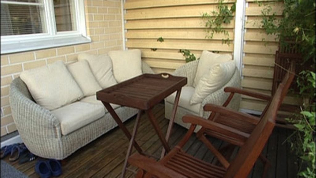 Terassille tuotiin mukavat rottinkiset sohva ja nojatuoli Suomi sohvasta.