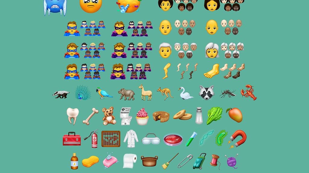 Uusien emojien joukossa on punaisia hiuksia ja kiharia hiuksia, kaljuja, supersankareita, äärettömän merkki, kenguru, kutomista, rullalautailua ja paljon muuta. Olosuhteista johtuen Suomessa suosituksi voi nousta esimerkiksi alla videon esikatselussa näkyvä ”kylmä naama”.