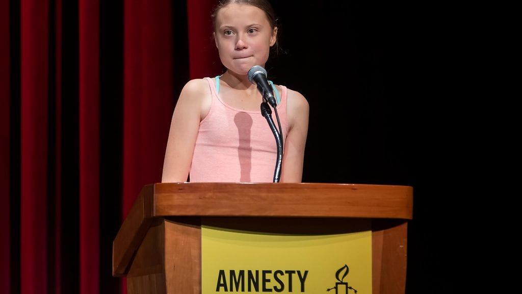 Ruotsalainen ilmastoaktivisti Greta Thunberg, 16, seisoi maanantaina hurraavan, muun muassa yliopisto-opiskelijoista koostuvan yleisön edessä painavaa sanottavaa mielessään.