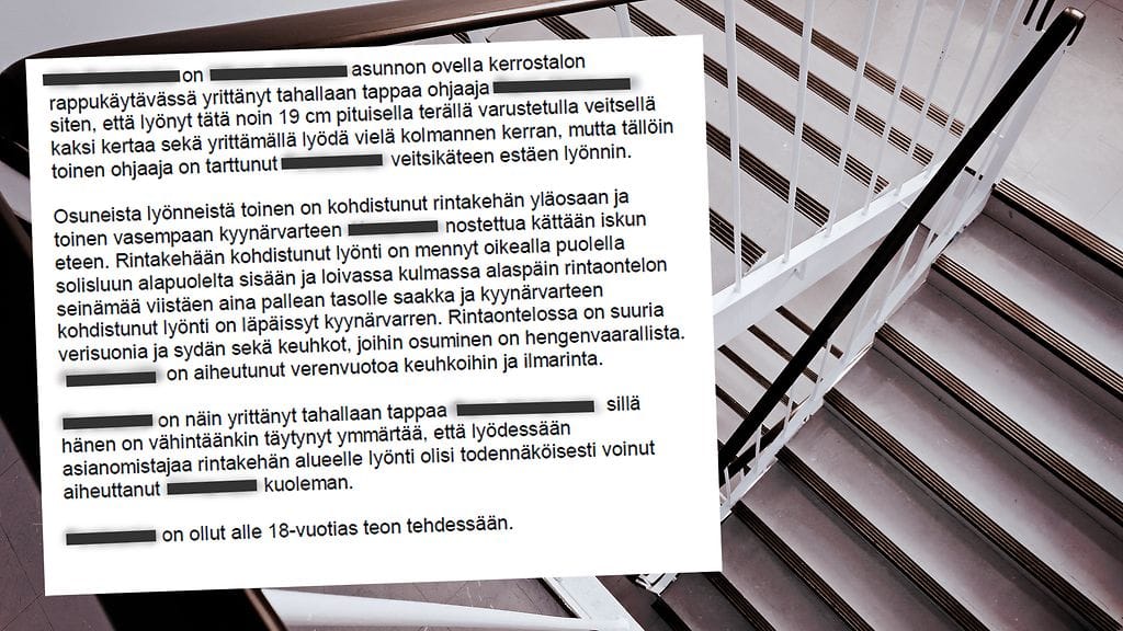 Veriteko tapahtui rappukäytävässä. Syytteen mukaan tyttö yritti tahallaan tappaa ohjaajan lyömällä tätä 19 sentin terällä varustetulla veitsellä kahdesti.