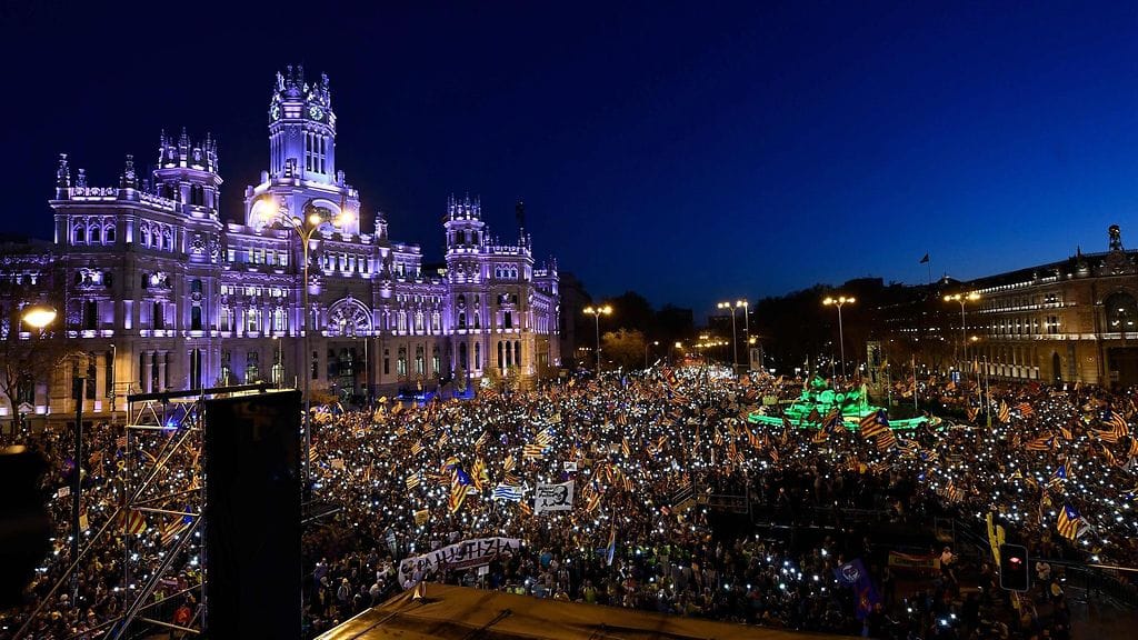 Poliisin mukaan noin 18 000 ihmistä marssi pääkaupunki Madridin keskustan halki. Kyseessä oli suurin Katalonian separatistien mielenosoitus Madridissa seitsemään vuoteen.