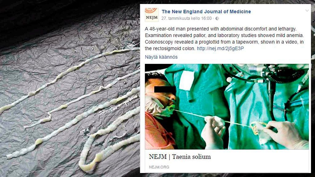 48-vuotias mies oli kärsinyt vatsakivuista noin kahden kuukauden ajan ennen kuin hän oli hakeutunut lääkäriin. Paksusuolen tähystyksessä paljastui, että miehen sisällä eleli lapamato.