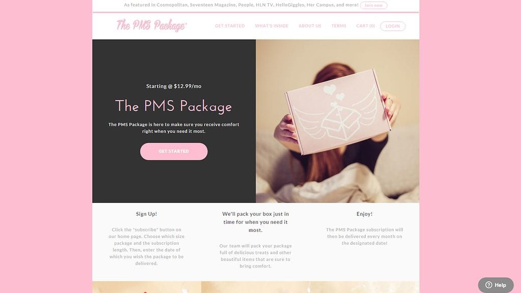 Kaksi 19-vuotiasta nuorta miestä on kehittänyt liikeidean kuukautisten ympärille: he myyvät niin sanottua PMS-pakkausta, joka sisältää naisille lohtua tuovia asioita, kuten suklaata, pörrösukkia, kosmetiikkaa, elokuvia ja pehmoleluja.