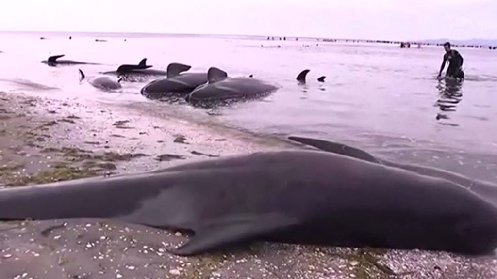 Muutama päivä aiemmin samalle Farewell Splitin rannalle ajautui yli 400 pallopäävalasta. Tuota valasryhmää ei pystytty auttamaan vaan ne kuolivat rannalle.