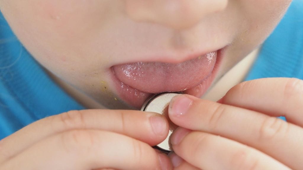 Maggie oli pistänyt suuhunsa lelusta löytyneen nappipariston ja nielaissut sen. Nappiparistot voivat johtaa tukehtumiseen, mutta vaara ei ole ohi nielemisen jälkeenkään. Useimmat nappiparistot ovat emäksisiä ja niiden liukeneminen ruoansulatuskanavassa voi johtaa syöpymävammoihin.