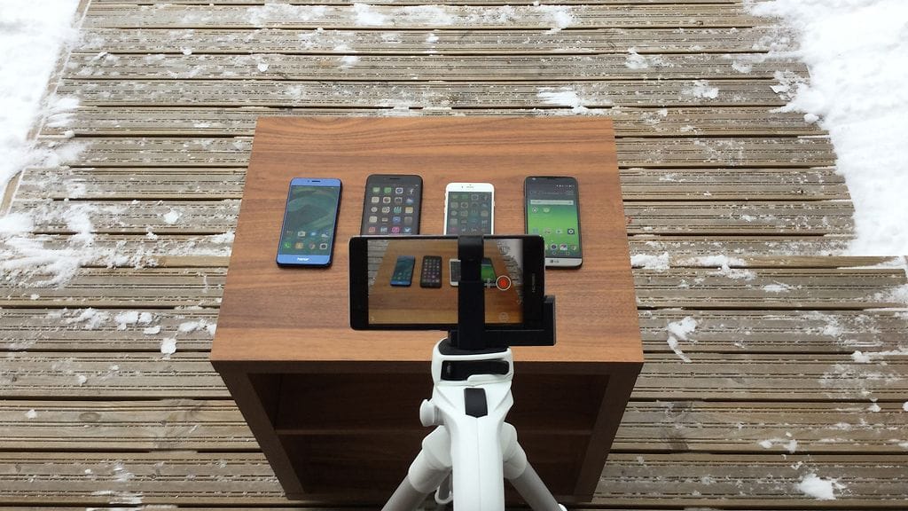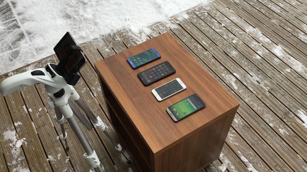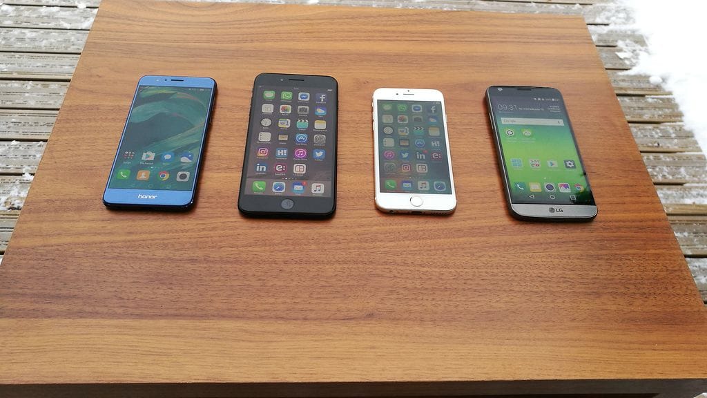 Laitoimme neljä älypuhelinmallia tunniksi 5 asteen pakkaseen. Testiin valikoituneet puhelimet olivat Apple iPhone 6, Apple iPhone 7 Plus, LG G5 ja Honor 8. Ennen testiä puhelimet ladattiin täyteen ja ne asetettiin lentokonetilaan. Näyttöjen automaattilukitus poistettiin. Valitsimme testiin vanhemman iPhonen, koska halusimme tietää, onko sen pakkaskestävyydessä eroa uuteen versioon verrattuna.