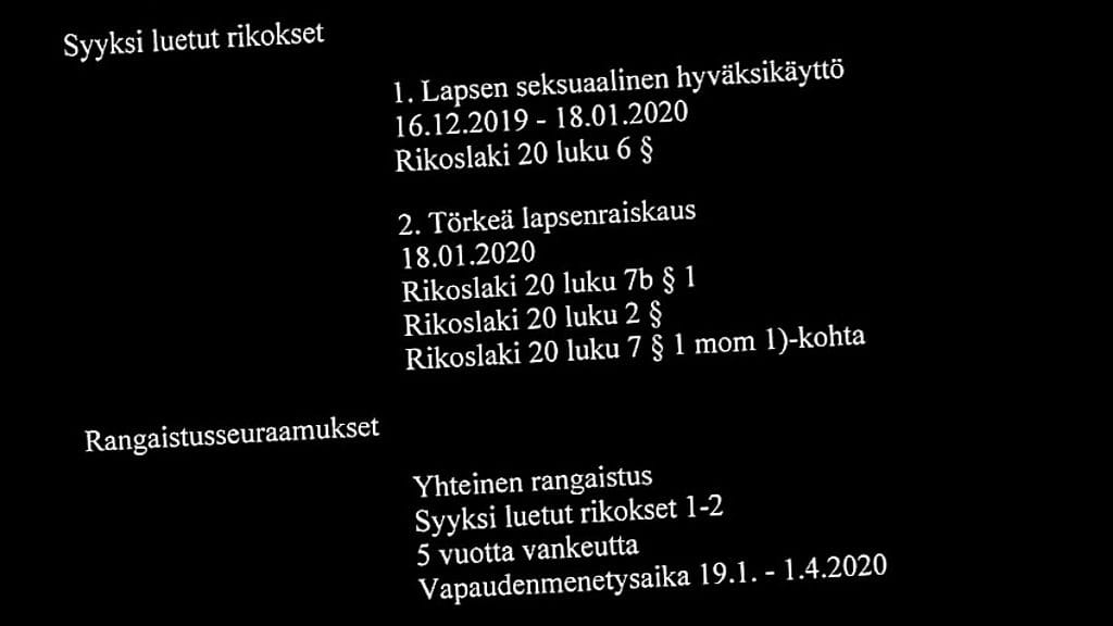 Mies tunkeutui tyttöön vaginaalisesti, oraalisesti ja anaalisesti. Sukupuoliyhteys oli suojaamaton.