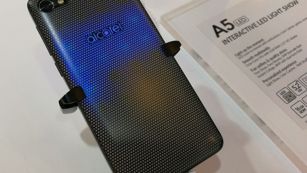 Alcatel A5 LED on muuten varsin tavanomainen ja vaatimaton älypuhelin, mutta erikoisuus on sen vaihdettavissa oleva takakuori: se sisältää pistemäisen pinnan alla LED-valoja. Idea on itse asiassa jopa varsin lupaava, jos sen toteuttaminen onnistuisi tulevaisuudessa joltakin muulta elegantimmin.