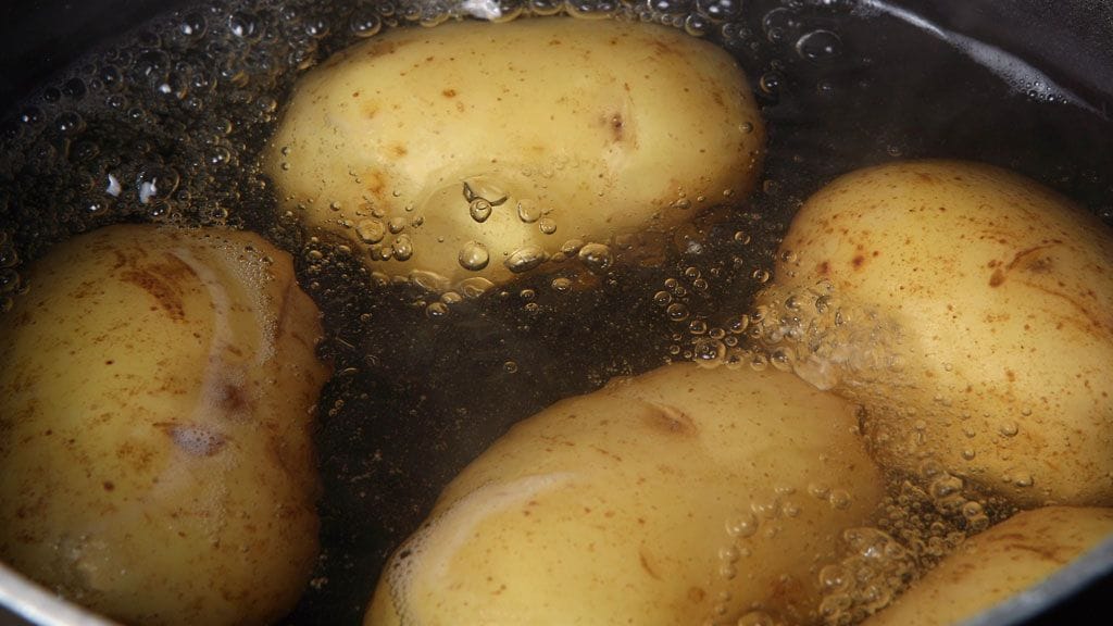 5. Keitä perunat kokonaisina ja kuorellisina. Tämä auttaa säilyttämään niiden korkean C-vitamiinipitoisuuden. Mitä kauemmin keität perunoita, sitä suurempi osa niiden vesiliukoisesta C-vitamiinista häviää. Pidä siis myös kansi kattilan päällä, jotta ne kypsyvät nopeammin.