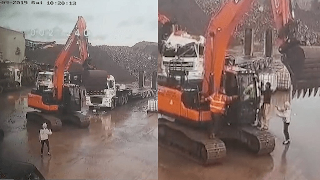 Yläpuolelta löytyvältä videolta on nähtävissä, kuinka Verity murskaa kaivinkoneella hetkessä yrityksen rekka-auton sekä esimiehensä yli 100 000 euron arvoisen Range Roverin.