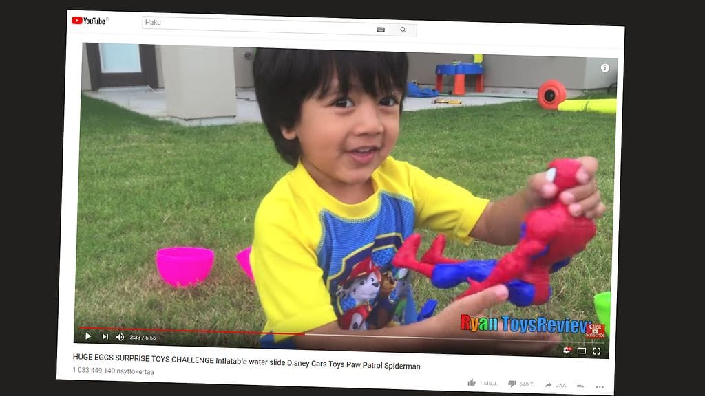 Ryan tienaa YouTube-videoillaan sievoisia summia. Vloggaaja on noussut suureen suosioon siitä huolimatta, että hän on vasta 6-vuotias.