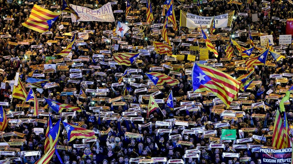 Mielenosoittajat vaativat paikallisten päättäjien vapauttamista. Päättäjät pidätettiin heidän tuettuaan Katalonian aluehallinnon itsenäistymispyrkimyksiä.