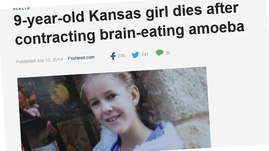 Tyttö kuoli tartunnan seurauksena tämän viikon keskiviikkona, kertoo Fox News. Naegleria fowleri -loinen tunnetaan ns. aivoja syövänä ameebana. Valtaosa tartunnoista johtaa kuolemaan.